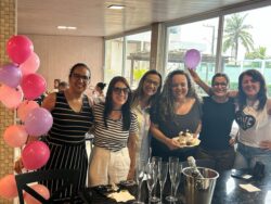 Quem também celebrou idade nova no feriado de 1º de maio foi a jornalista Raquel Almeida, assessora de imprensa do Ipesaúde. Ela celebrou 50 anos junto com a família em clima de sol, piscina e almoço. No sábado (3), a profissional de comunicação festejou a data com as amigas durante um café da manhã no Farol Plaza Hotel, com direito a bolo e velinhas. Viva a Raquel! Na foto, Rosa Vasconcelos, está colunista, Glice Rosa, a aniversariante, Kátia Santana e Débora Matos.