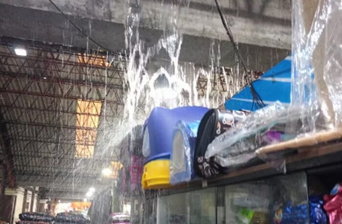 Com o grande volume de água, calhas e telhados não suportaram e a chuva invadiu os boxes, molhando estoques de alimentos como feijão e arroz, além de grandes quantidades de produtos pet. Comerciantes relatam que o problema é antigo e se repete sempre que chove forte.