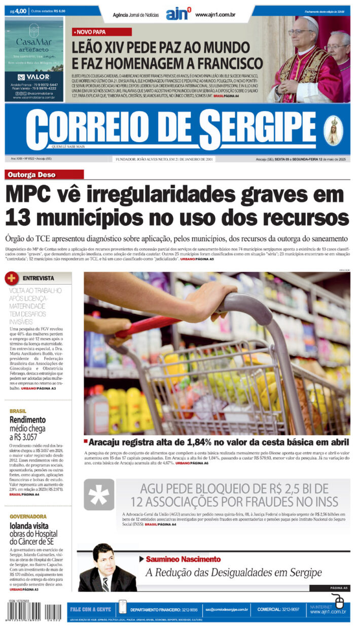 História – Nascido como Jornal da Manhã em 1986, fruto dos investimentos do grande visionário João Alves Filho, foi por obra da visão moderna do empresário João Alves Neto que o CS ganhou as ruas em meados de 2001. A ideia era trazer um jornal totalmente novo, com outro nome, outro projeto gráfico e editorial, com a ampliação da equipe e modernos equipamentos de impressão. Assim chegou o Jornal Correio de Sergipe, que do antigo só manteve o CNPJ. Com o passar dos anos, João Alves Neto, que permanece sendo o diretor presidente, não apenas manteve o CS em circulação, mas agregou um novo produto, o site AJN1, formando assim a Agência Jornal de Notícia.
