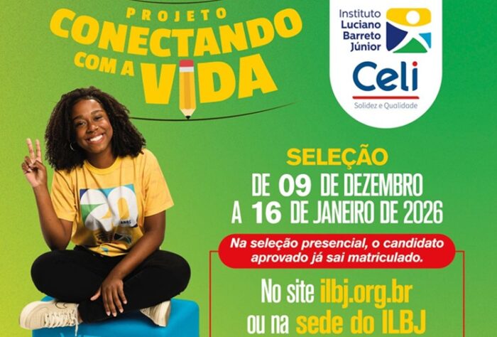 O Instituto Luciano Barreto Júnior (ILBJ) abrirá, na próxima terça-feira (9), as inscrições para a nova turma do Projeto Conectando com a Vida, programa gratuito destinado a jovens da rede pública. O processo seletivo segue até 16 de janeiro de 2026, com matrícula imediata para os aprovados na seleção presencial.