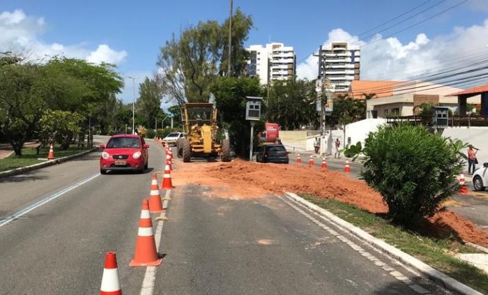 Por conta da obra de ligação de uma rede de drenagem na avenida Beira Mar, nas imediações do Palácio de Veraneio, a partir desta terça-feira (14), o trânsito no local sofre alterações nos dois sentidos da via, que terá um desvio e o fluxo funcionará em binário. Os trabalhos estão sendo realizados pela Empresa Municipal de Obras e Urbanização (Emurb) e a previsão é que sejam concluídos em 30 dias. Nesse período, os agentes da Superintendência Municipal de Transportes e Trânsito (SMTT) estarão diariamente no local, auxiliando e orientando os condutores.